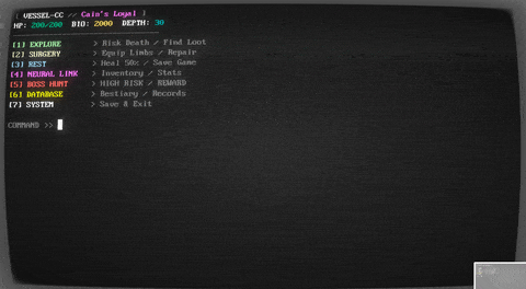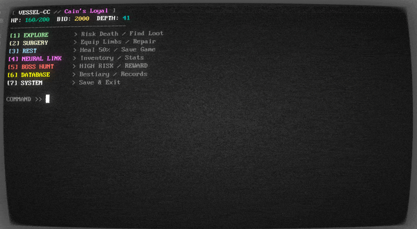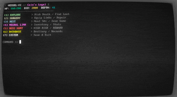 - SANITY: The wastes are maddening. Low sanity causes UI glitches, text hallucinations, and system instability.